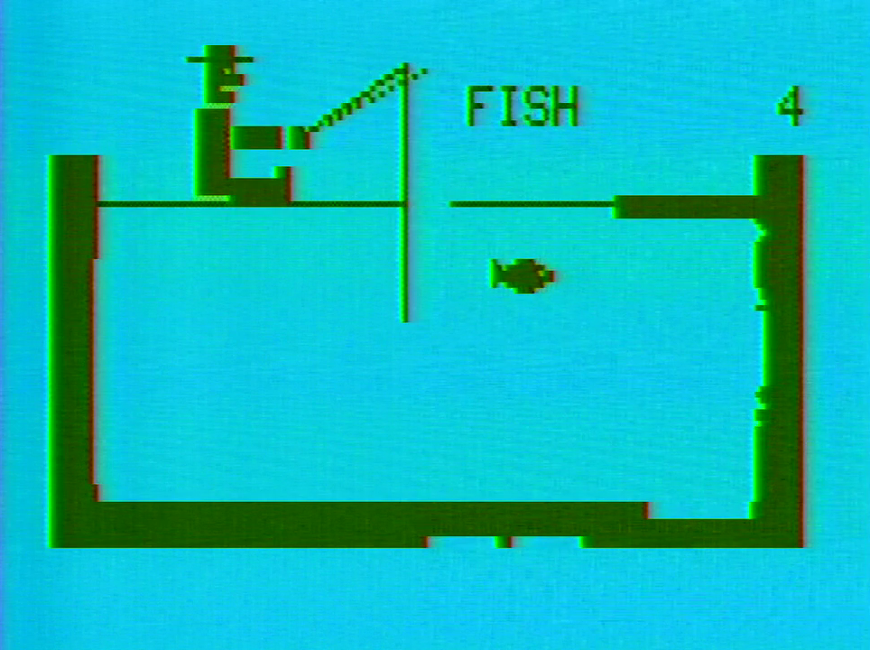And Fishing Derby is a truly unique experience. The other three debut Activision titles are more or less renditions of existing games (even aping some Atari arcade projects in some cases), but Fishing Derby really comes out of the blue. There are practically no other fishing games on any home platform before the Famicom came out several years later in Japan, save for the incredibly obscure Fishin’ Hole written in BASIC for the Professional Arcade and published as a code listing in the Arcadian newsletter in May 1983. In that game you are simply raising or lowering your pole’s position in the water in between fish movements and hoping that their movements will coincide with where your hook is at. And even later fishing games were different experiences built off of what Japanese developers were doing – I’ve found no indication that Activision’s VCS games ever found their way into Japanese markets in the 1980s, so in a sense Fishing Derby not only started the fishing video game genre, it plays unlike anything thematically similar.