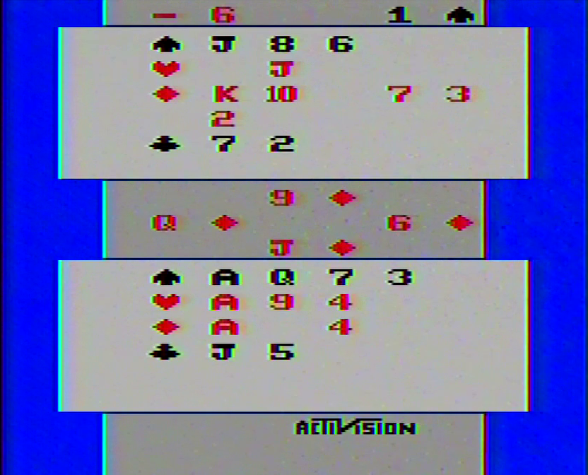 As for Kaplan, once Bridge was completed he set about making assembler tools for the Intellivision platform so that Activision’s team could begin making games for that console as well. In 1981 he would come back to game development on the VCS with his final game on the platform, the well-regarded Kaboom!. While Bridge is pretty much the exact opposite of that frenetic release, there really isn’t anything like it on the VCS library… or any of its competitors, for that matter. Bridge essentially stands alone on the home console space as the sole attempt to translate the card game ever, as far as I can tell. Perhaps it’s due to bridge players’ preference for in-person sessions or online play, or maybe the primary audience for home console gaming has just never come around to bridge. In any case, this is a perfectly playable attempt at the game.