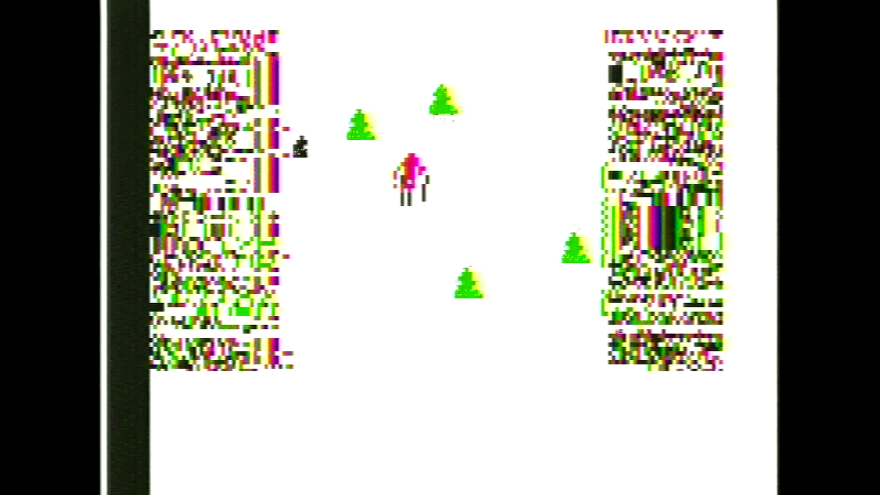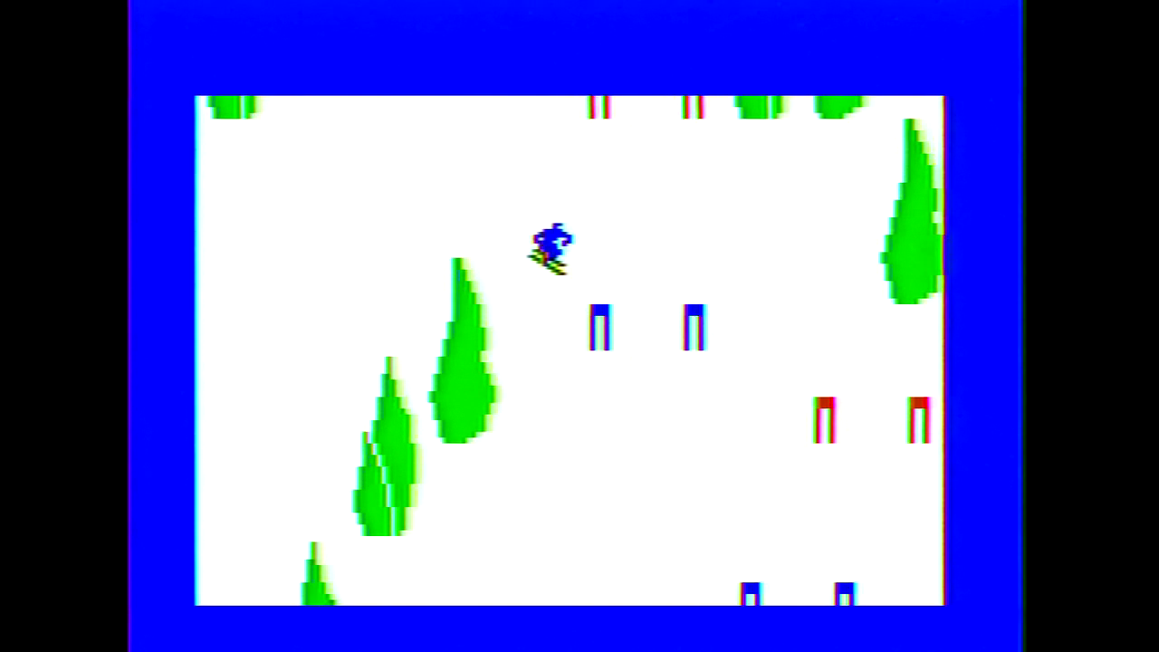 Owing to how quickly a trip down the virtual mountain can take, Whitehead describes Skiing as a game for “short attention spans.” As he put it, it’s a game where the player can go through the course quickly and then work on making their run more efficient to beat their time. If you fall and screw up, you can quickly reset and hop right back to it at the top of the slope, ready to try again. Accordingly, just as with Dragster and Maze Craze, you can restart a slalom run by pressing the button on the controller at its conclusion. While in downhill modes this button’s purpose is shifted to jumping, this quick restart functionality feeds into the game’s design ethos of quick sessions that draw the player into trying again.